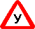 "Учебное транспортное средство" - в виде равностороннего треугольника белого цвета вершиной вверх с каймой красного цвета, в который вписана буква "У" черного цвета (сторона не менее 200 мм, ширина каймы - 1/10 стороны), - спереди и сзади механических транспортных средств, используемых для обучения вождению (допускается установка двустороннего знака на крыше легкового автомобиля); |