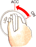 5. Хөдөлгүүрийг унтраахдаа түлхүүрийг цагийн зүүний эсрэг “ON” байрлалаас “ACC” байрлал руу эргүүлнэ. Энэ үед хөдөлгүүрийн асаалтын систем цахилгаан тэжээлээс салдаг тул хөдөлгүүр унтарна. |
